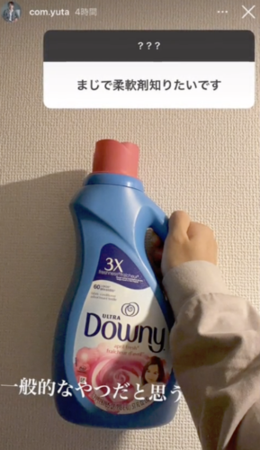 種類が判明した理由は、以前ゆうたさんがファンからの「柔軟剤が知りたい」という要望に、Instagramのストーリーで写真を載せて答えていたからです。