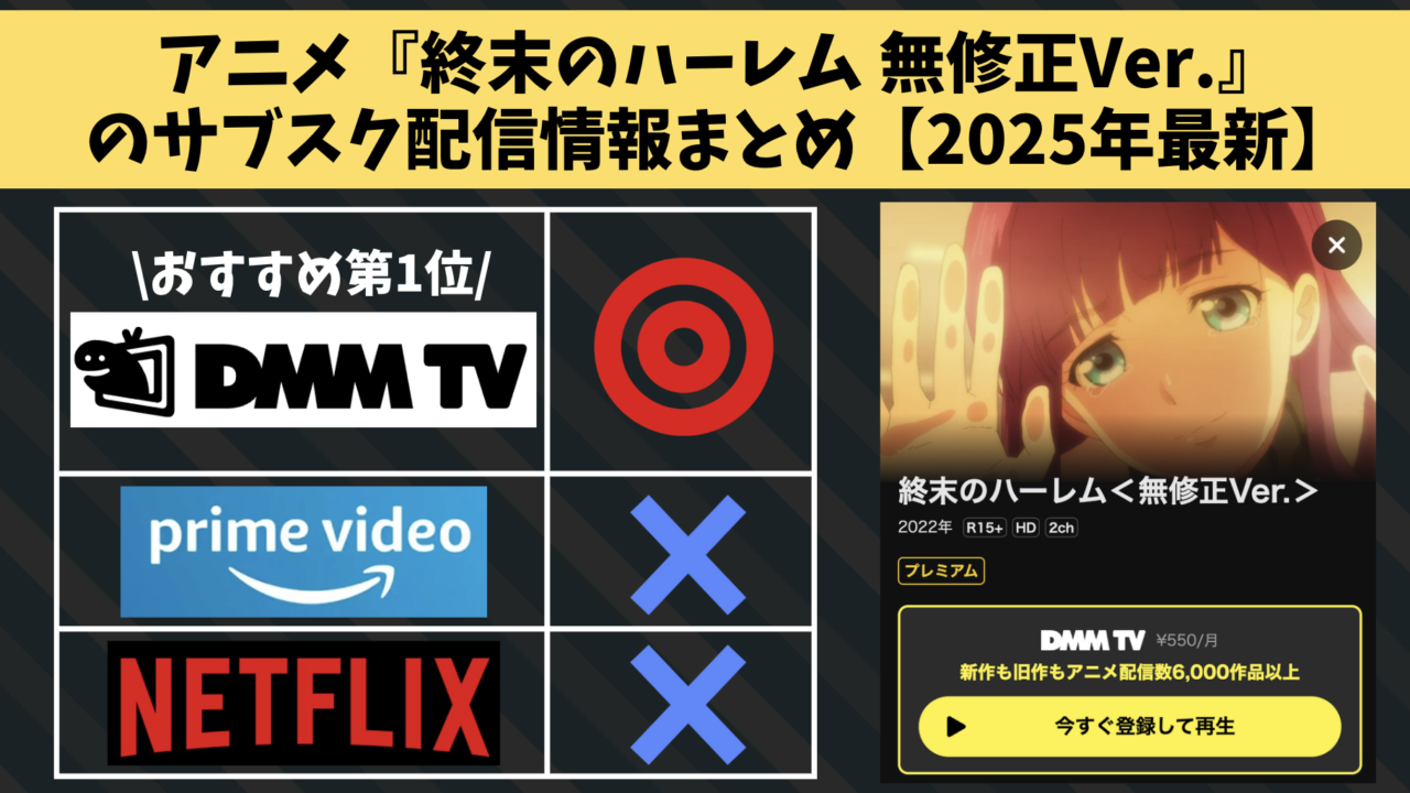 本記事では、アニメ『終末のハーレム 無修正Ver.』の配信状況について解説しています。