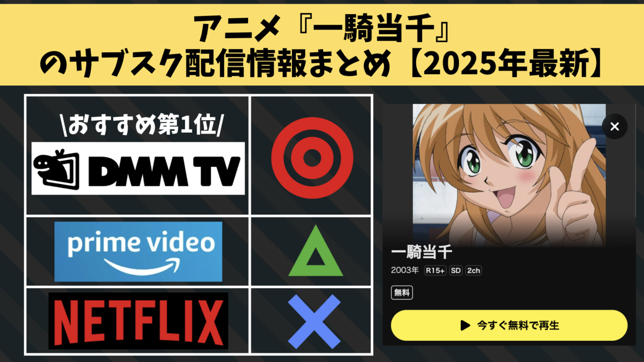 アニメ『一騎当千』の大手サブスクサービスでの配信状況を調査し、「どこで見れるのか」一覧にまとめました。