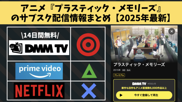 「DMM TV」は、アニメの見放題作品で業界No.1を誇っており、初回登録から14日間無料で利用できるので、非常におすすめですよ。