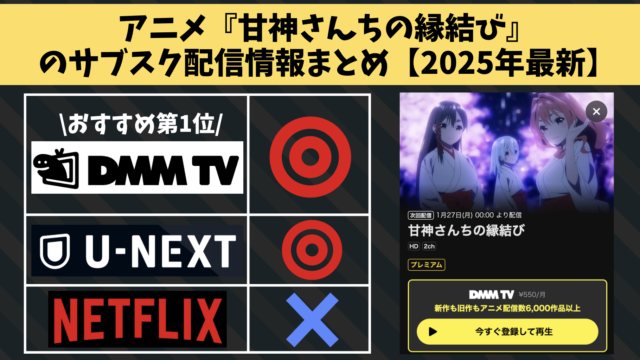 結論としまして、2025年現在でアニメ『ふたりエッチ』を無料視聴できるサブスクは、「DMM TV」となります。