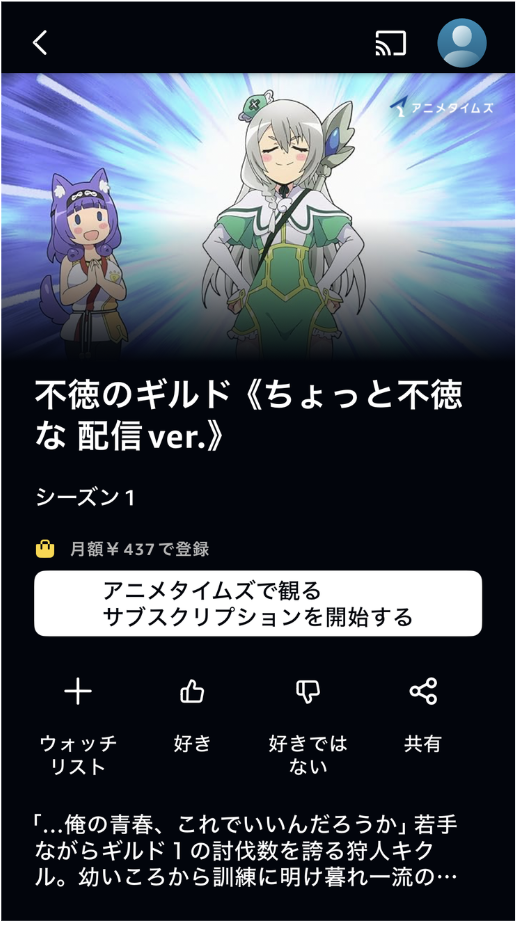アニメ『不徳のギルド ちょっと不徳な 配信ver.』ですが、大手サブスクサービスである「Netflix」や「Amazonプライム」では、現在配信終了していて見れないのでしょうか?