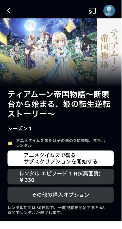 そこで、『ティアムーン帝国物語』が「Amazonプライム」でいつまで見放題配信なしで、いつから見放題配信が開始されるかも現時点では未定です。