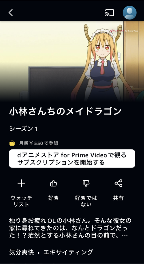 アニメ『小林さんちのメイドラゴン』は2025年現在、「Amazonプライム」の見放題では配信終了しています。