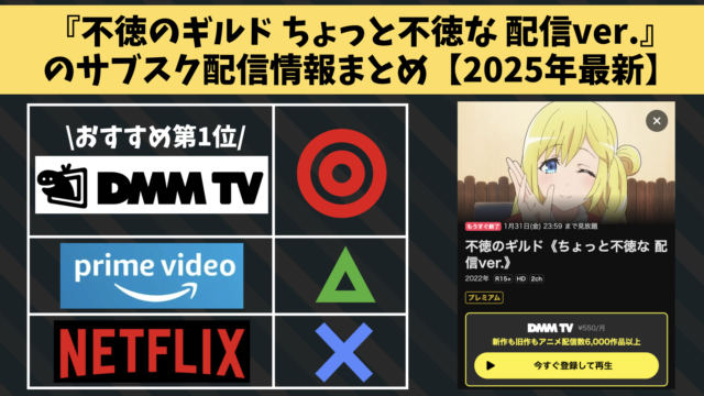 その中でも「DMM TV」は、電子書籍も最大2,550円まで無料で読むことができるため、原作も一緒に楽しみ方には最高のサービスとなります。