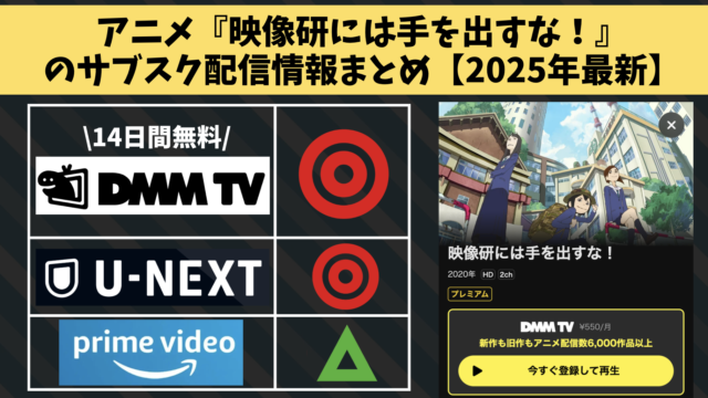 調査の結果、2025年現在でアニメ『とある魔術の禁書目録』を無料視聴できるサブスクは、「DMM TV」「U-NEXT」「dアニメストア」となります。