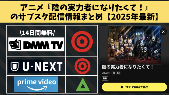 結論としまして、2025年現在でアニメ『とある魔術の禁書目録』を無料視聴できるサブスクは、「DMM TV」「U-NEXT」「dアニメストア」となります。