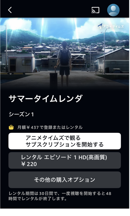 アニメ『サマータイムレンダ』ですが、大手サブスクサービスである「Amazonプライム」では、現在配信終了していて見れないのでしょうか?