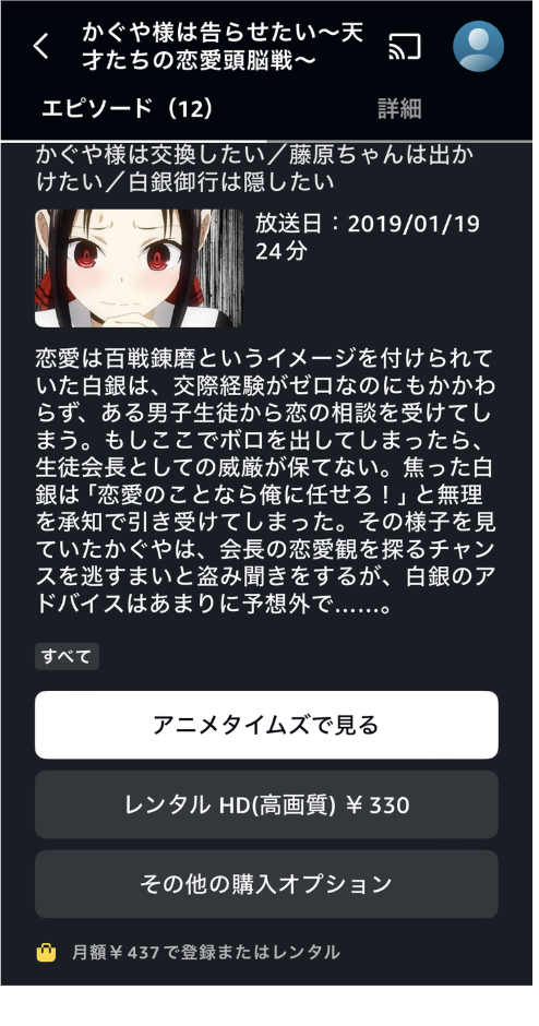 そのため、現在見放題で見れないということは、『かぐや様は告らせたい』の契約期間が終了しているのでしょう。