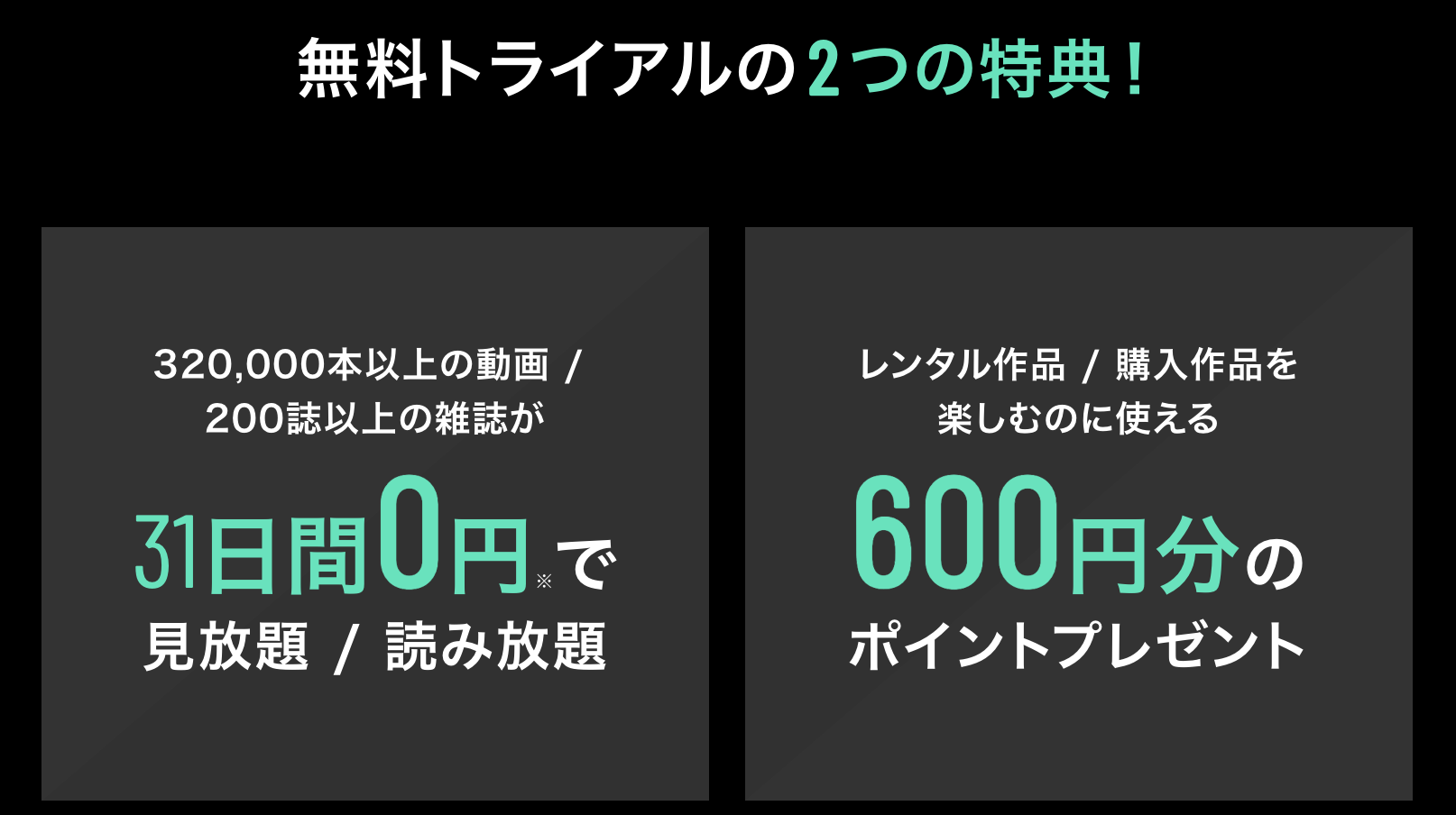 ※業界No.1無料期間 14日間 無料特典 ①550円分のポイント