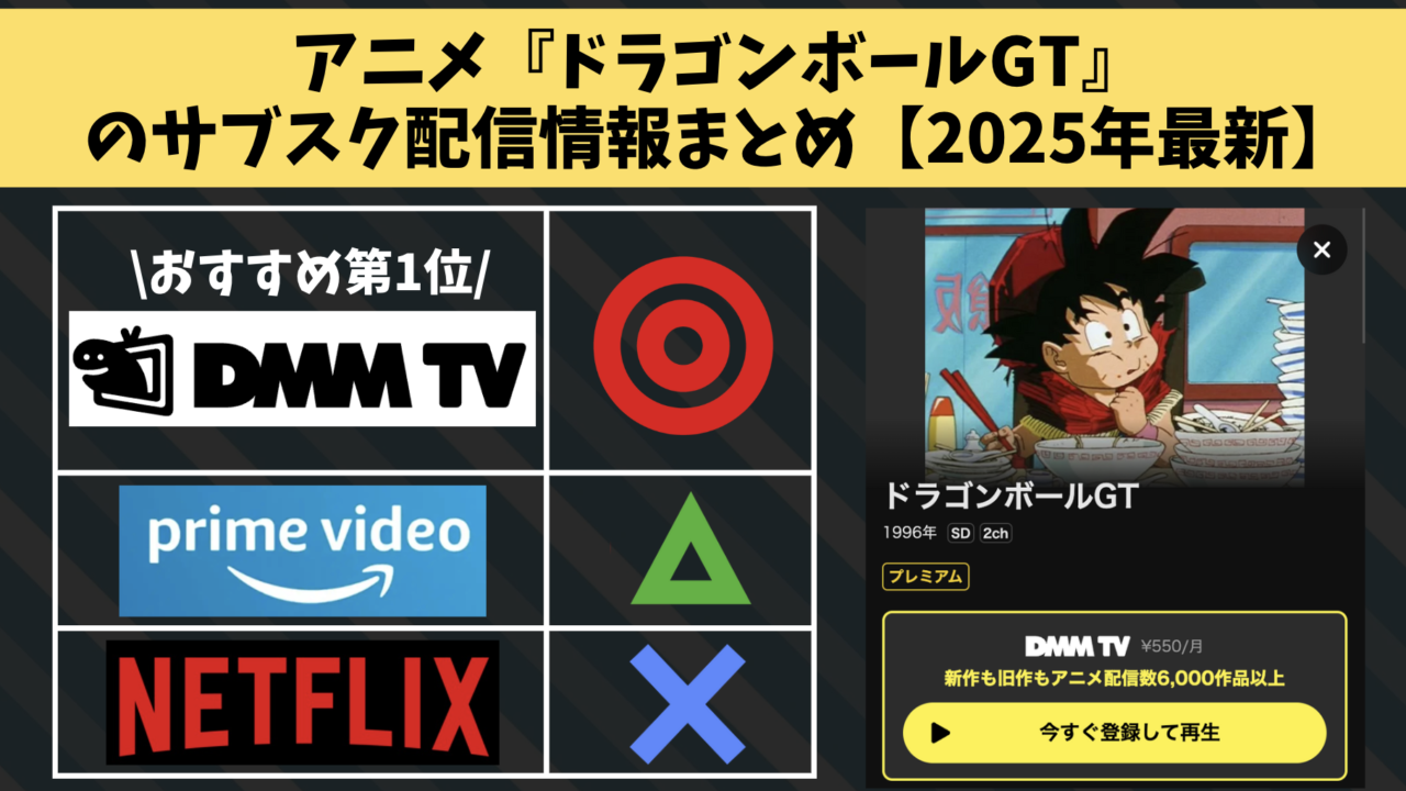 アニメ『ドラゴンボールGT』の大手サブスクサービスでの配信状況を調査し、「どこで見れるのか」一覧にまとめました。