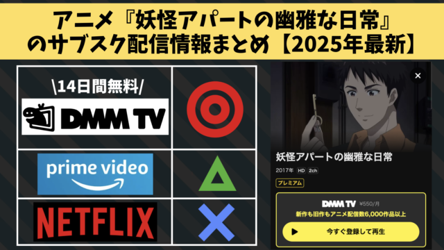 その中でも「DMM TV」は、電子書籍も最大2,550円まで無料で読むことができるため、原作も一緒に楽しみ方には最高のサービスとなります。