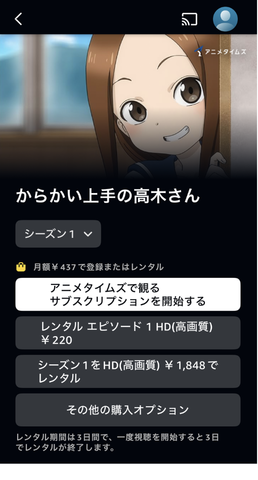 アニメ『からかい上手の高木さん』ですが、大手サブスクサービスである「Amazonプライム」では、現在配信終了していて見れないのでしょうか?