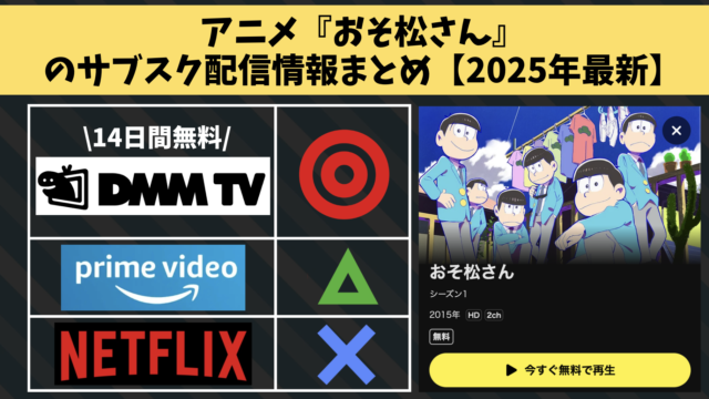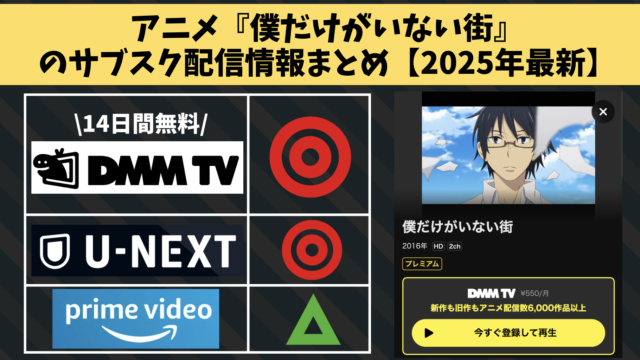 調査の結果、2025年現在でアニメ『ルパン三世』を無料視聴できるサブスクは、「DMM TV」「U-NEXT」「dアニメストア」「Netflix」となります。