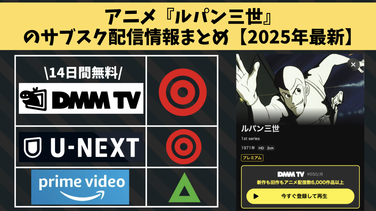 本記事では、アニメ『ルパン三世』の配信状況について解説しています。