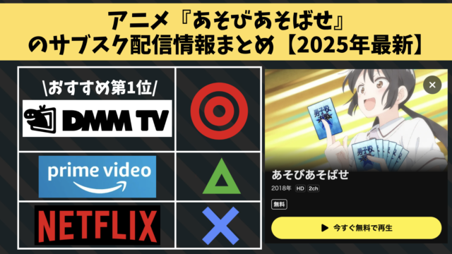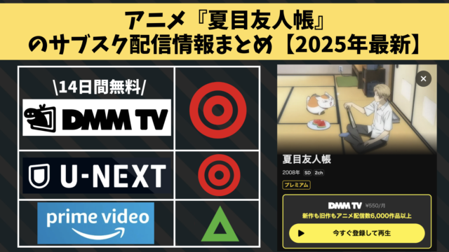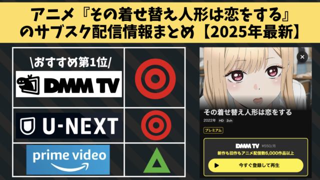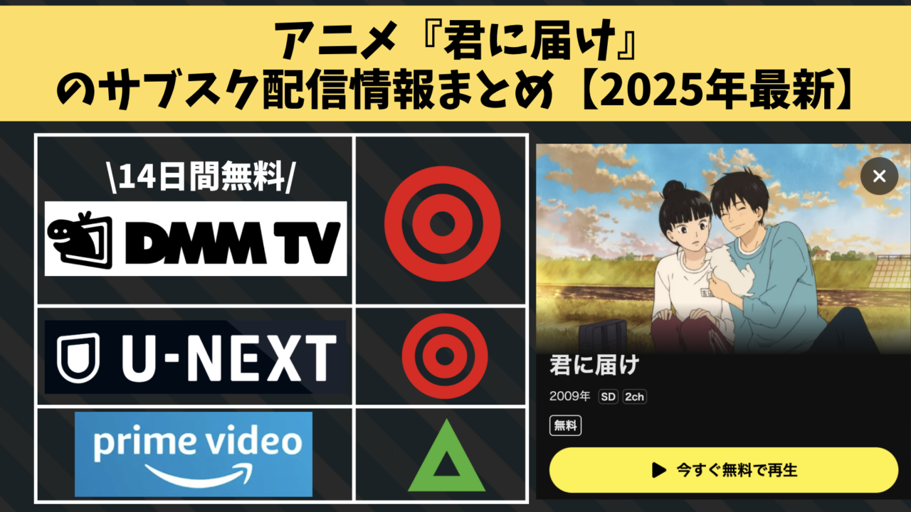 結論としまして、2025年現在でアニメ『君に届け』を無料視聴できるサブスクは、「DMM TV」「U-NEXT」「dアニメストア」「Netflix」となります。