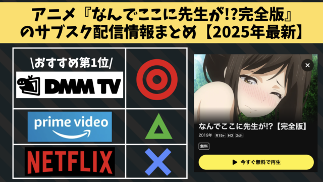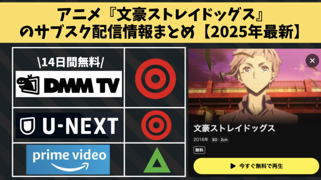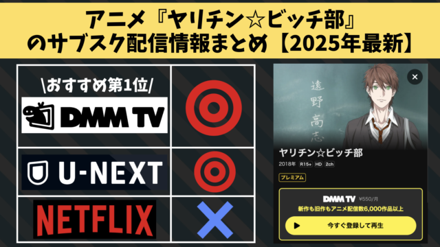 結論としまして、2025年現在でアニメ『無能なナナ』を無料視聴できるサブスクは、「DMM TV」「U-NEXT」「dアニメストア」となります。
