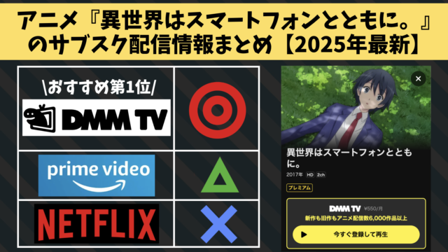 結論としまして、2025年現在でアニメ『現実主義勇者の王国再建記』を無料視聴できるサブスクは、「DMM TV」「U-NEXT」「dアニメストア」となります。