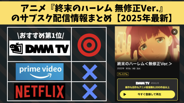 その中でも「DMM TV」は、電子書籍も最大2,550円まで無料で読むことができるため、原作も一緒に楽しみ方には最高のサービスとなります。