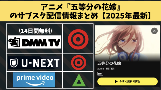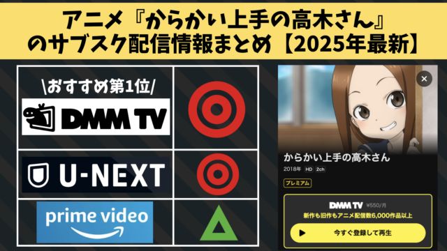 結論としまして、2025年現在でアニメ『ギャグマンガ日和』を無料視聴できるサブスクは、「DMM TV」「U-NEXT」「dアニメストア」「Amazonプライム」となります。